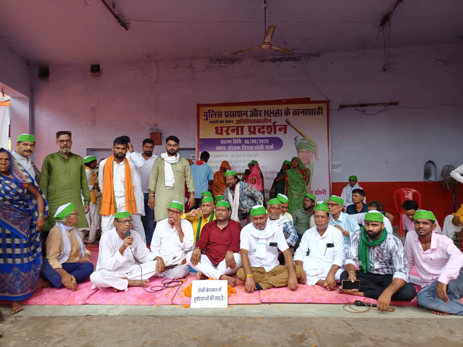 डोभी क्षेत्र के ऐतिहासिक महात्मा गांधी पार्क चल रहे किसान नेता अजीत सिंह की अनिश्चितकालीन धरने की तीसरे दिन चंदवक व्यापार मंडल व क्षेत्र के संभ्रांत लोगों के साथ महिलाओं ने धरने का समर्थन करते हुए बढ़ चढ़कर हिस्सा लिया।इस दौरान एनएचआई व पुलिस के विरोध में जमकर नारेबाजी की गई